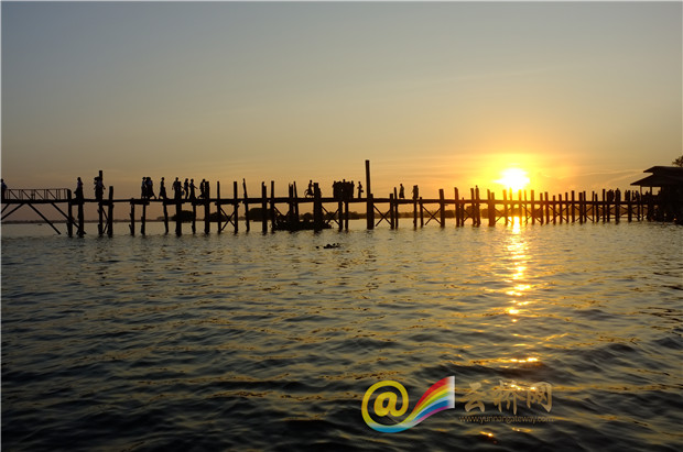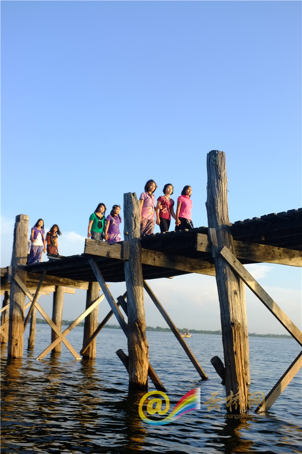 “传说很久以前,美丽的翡翠仙子在这座桥上,与曼德勒王子相遇。王子后来就站在桥上,翘首以待心上人的到来。他们手牵手,走过夕阳下的长桥,回到王宫,过上幸福的生活。”