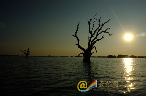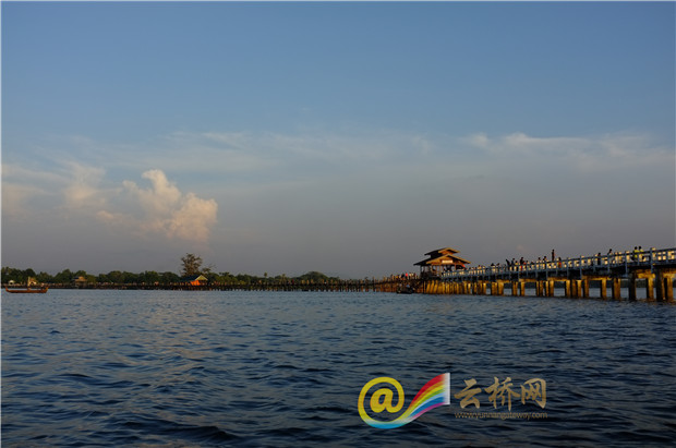 桥上有六座亭子,专为供行人休憩,华人告诉我,六座亭子表达了佛教的“六合精神”,是为同修相亲相爱的准则。亭子里有卖槟榔、缅桃的,还有各种缅甸本土的小挂饰。太阳已经偏西,挂在了远处佛塔的塔尖上,红彤彤圆滚滚一大个儿,放射出晕红的光,染红了半面湖水。那一刻,才真正的明白,何为“夕阳无限好。”