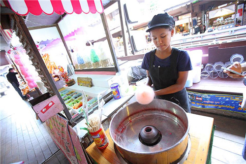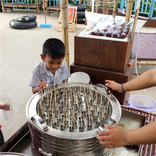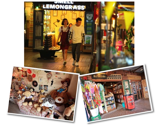 泰国政府花费3年修建这个市集,想让年轻一代从玩乐中学习当时的历史、仪式、文化及生活艺术等,接触古时生活情景。复古淡雅的市场其实就是华欣的往日情怀怀旧创意市集,聚集了60多家非常有特色的商店,包括杂货店、美容院、糖果店、面包店、时装店等等,游览在街区中,做旧的木板钉上墙壁,颇具设计感的门廊仿佛时光隧道,带你回到从前。你会发现很传统的小吃甜品,也能找到从未看到过的老手艺,仿佛时光穿梭回到了旧时光。
