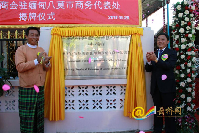 山水相连心相依,胞波情谊永流传。11月29日,德宏州贸易商会驻缅甸八莫商务代表处在缅甸八莫县举行成立揭牌仪式。