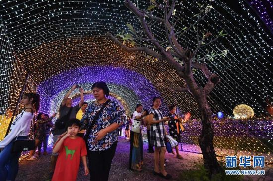 12月5日,在泰国曼谷,参观者在2017泰国彩灯节上欣赏彩灯艺术作品。