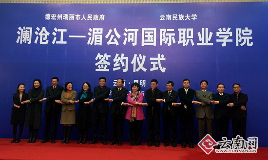 【项目一】2017年1月15日云南民族大学与瑞丽市人民政府签署共建“澜湄国际职业学院”正式协议,当日,“澜湄职教基地”揭牌(第二次外长会中方倡议项目),“澜湄职教联盟”启动。2017年9月,学院招收了首批国内120余名学生;2018年9月,学院将面向澜湄区域内的泰国、缅甸、柬埔寨、老挝、越南五国招收外国学生。