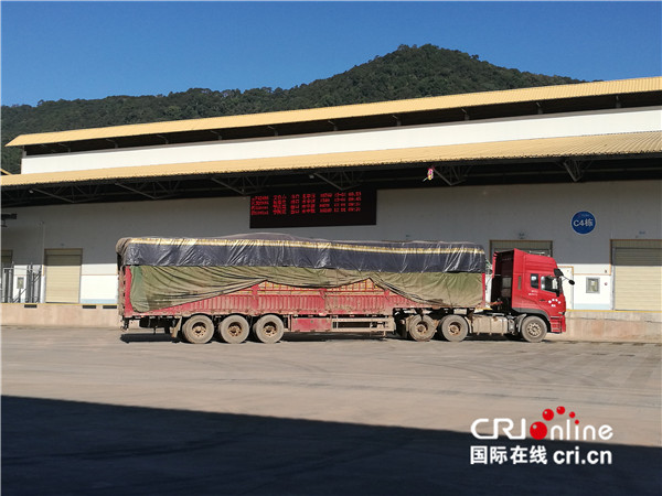 在磨憨边民互市场等待检验的大货车