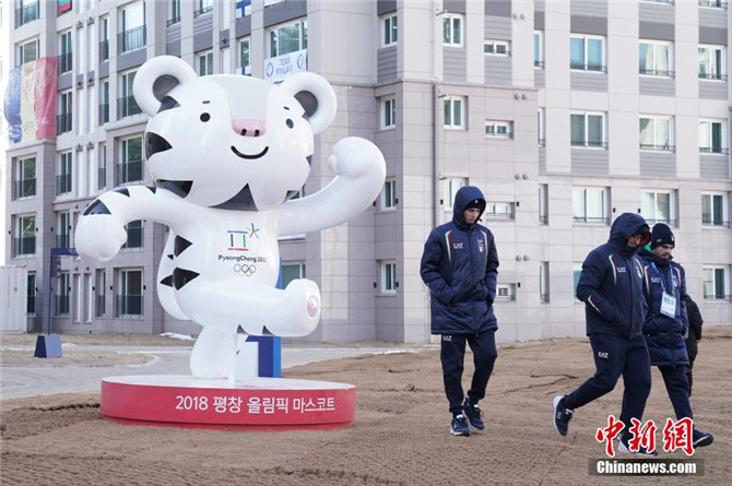 图为平昌奥运村中的吉祥物雕像。中新社记者 崔楠 摄