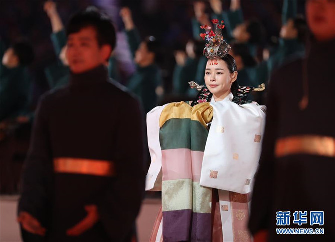 2月25日,韩国歌手李彩琳(左二)在闭幕式上演出。新华社记者 李钢 摄