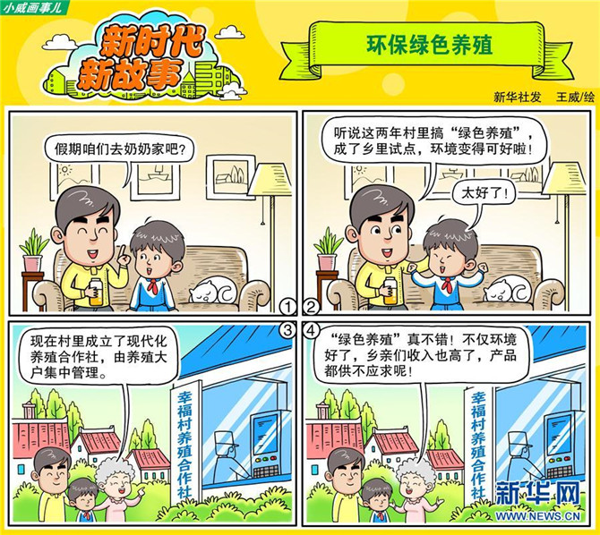 新时代新故事——环保绿色养殖(漫画) 新华社发 王威 作
