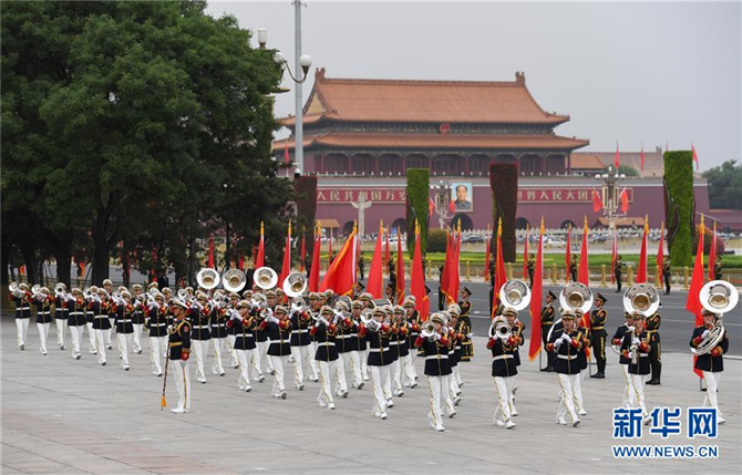这是6月6日在欢迎仪式上拍摄的行进乐队。作为欢迎仪式中的重要一环,军乐团队列行进表演也进行了多项改进。最为明显的是行进乐队的服装变化:由原来红色上衣、白色长裤、金色腰带改为藏蓝色上衣、白色长裤、白色皮鞋、白色腰带和佩章。