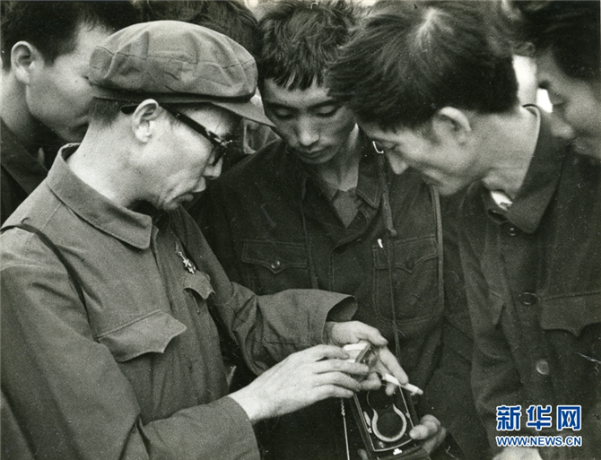 1969年,杨长福(左1)在和摄友们交流。受访者供图