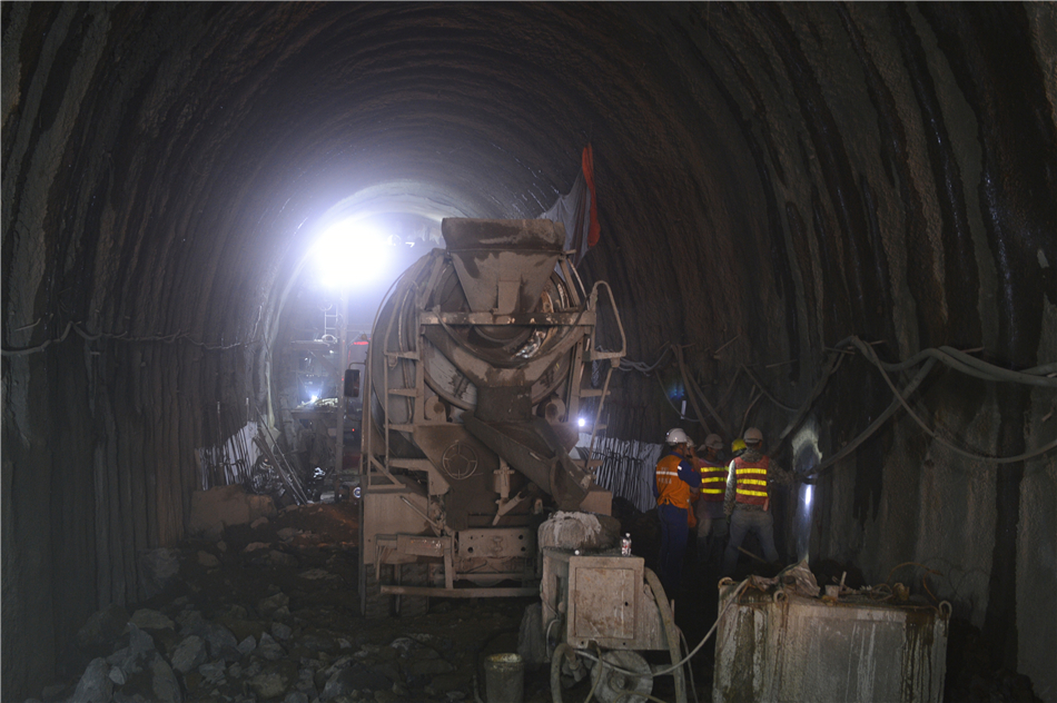 这是10月31日在老挝琅南塔省拍摄的由中国中铁五局承建的中老铁路纳堆一号隧道施工现场。