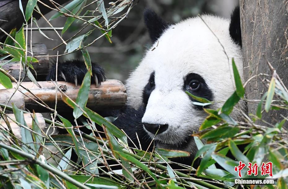 11月19日,初冬时节,成都大熊猫繁育研究基地的大熊猫宝宝们在熊猫乐园卖萌,憨态可掬,迷倒众粉丝。