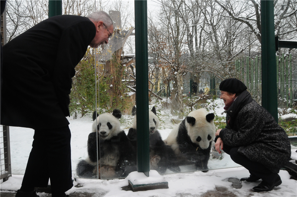 经过数周的精心准备,在奥地利生活两年多的中国大熊猫龙凤胎“福伴”“福凤”将于2日踏上回乡的旅程。得知它们要回中国的消息,很多熊猫“粉丝”12月1日专程来到维也纳美泉宫动物园,在雪中与这对熊猫宝宝道别,其中包括奥地利总统范德贝伦夫妇。