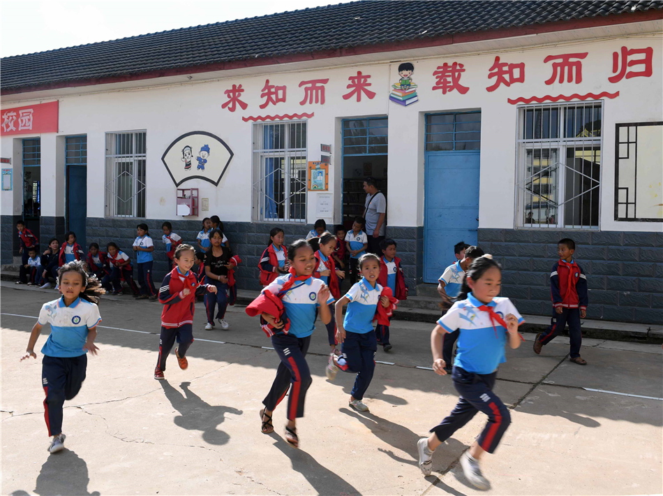 12月10日,孟连县娜允镇中心小学的学生在课余时间玩耍。 云南省孟连傣族拉祜族佤族自治县是国家扶贫开发工作重点县之一,县内聚居着傣族、拉祜族、佤族等多个少数民族。近年来,该县在推进脱贫攻坚过程中,组建扶贫工作队,驻村入户对建档立卡贫困户进行帮扶,坚持补齐农村基础设施和公共服务短板,实现产业扶贫、安居建设、基础设施、基本公共服务和社会保障等全面提升,呈现出生态环境宜居美、兴业富民生活美、乡风文明行为美的新气象。