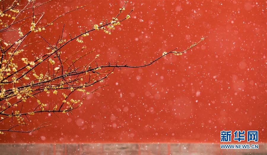 这是故宫雪中盛开的鲜花(资料照片)。 冬日的故宫,既有大气庄重的美丽,也有灵动肆意的生气。