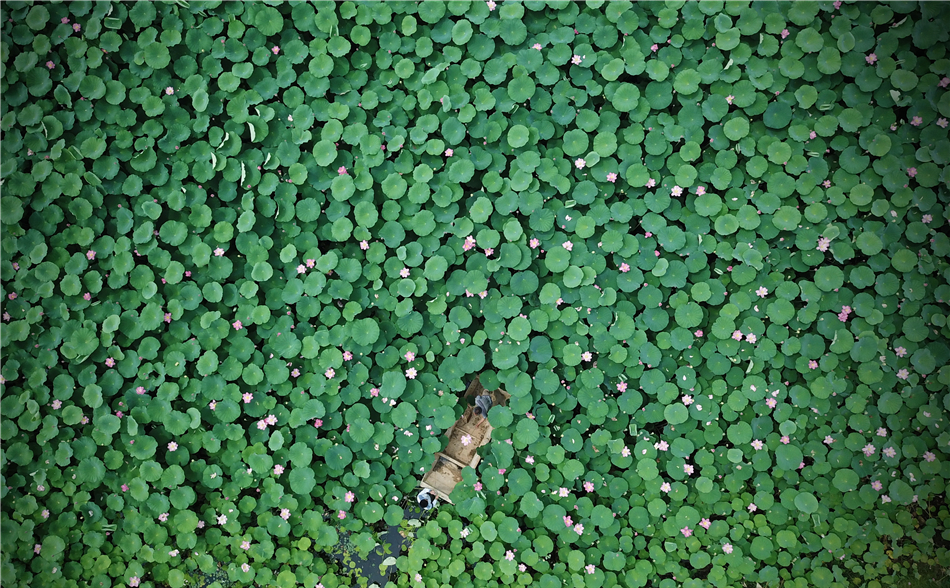 7月1日,游客在河北省滦县南平庄村荷塘游览(无人机拍摄)。 在即将过去的2018年,各地摄影师用镜头记录下四季中国。大江南北,一幅幅色彩斑斓的美丽画卷徐徐展开。