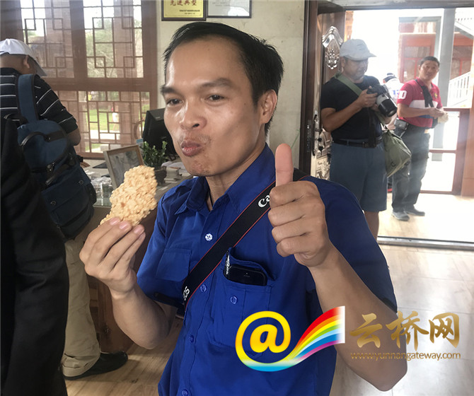 拿起一块毫崩,一嘴咬下去咯嘣脆,《万象时报》记者维斯特.特帕拉斯眼睛一亮马上竖起了大拇指,这是对傣寨美食最好的点赞。