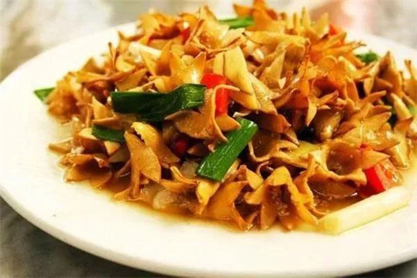 芭蕉花本身有苦涩的味道,需要经过人工揉搓、水炒等工序去除涩味,因此卖相不太好,却是难得的美味。