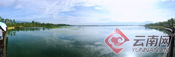 时值六月,记者来到万亩青华海生态湿地恢复工程现场,看到青华海东湖书卷广场已有市民在散步、赏荷。登上湖畔的永昌阁,西湖、东湖美景尽收眼底,令人联想曾经“哀牢古湖”的壮观景象。