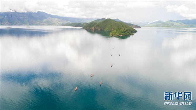这是云南泸沽湖美景(7月30日无人机拍摄)。 位于云南和四川交界处的泸沽湖湖面海拔2690米,面积约50平方公里,水质清澈,长期保持I类水质。这里因湖泊周边居民保持有母系氏族社会的某些习俗而有“东方女儿国”之誉,以绝美的湖光山色和神秘的摩梭文化受到海内外游客的青睐。 新华社记者 胡超 摄