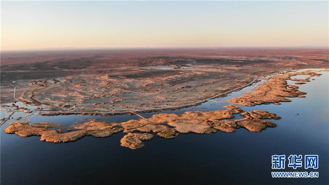 这是10月12日无人机拍摄的居延海。 新华社记者 邹予 摄