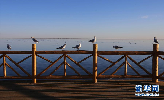 这是10月12日拍摄的栖息在居延海岸边的鸟群。 新华社记者 安希雅 摄
