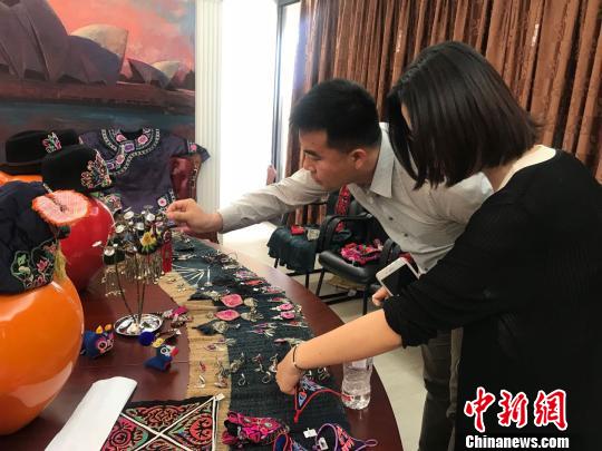 主办方介绍云南少数民族绣娘手绣的彝绣。陶社兰 摄