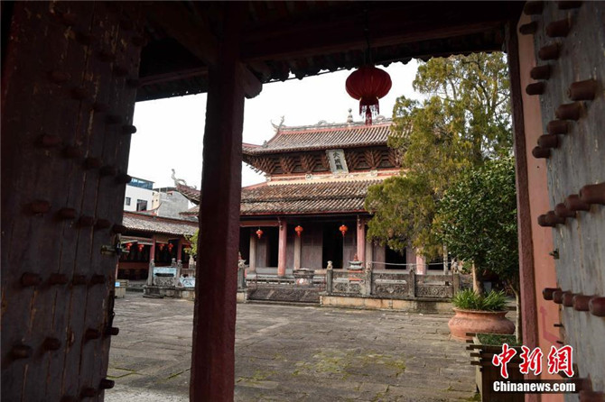 图为文庙内保存完好的大成殿是一座规模宏大、古色古香的建筑。文庙原占地8713平方米,以大成殿为中心,分前、中、后三门。张斌 摄