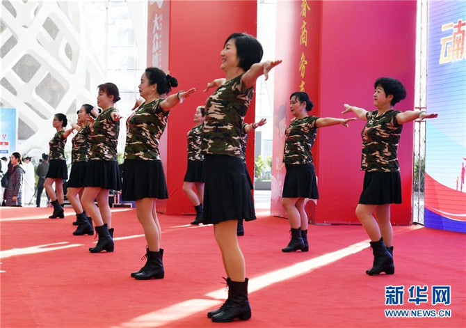 1月27日,昆明市盘龙区老体协代表在活动上展示健身操。新华社记者 杨宗友 摄