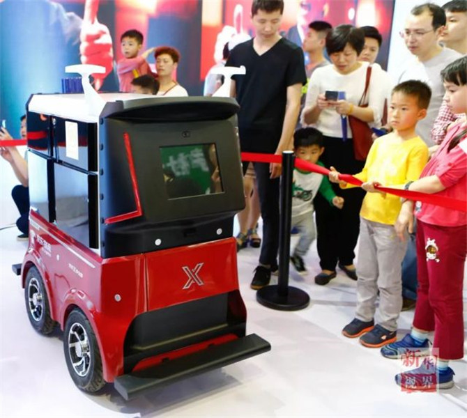 市民在福州海峡国际会展中心体验无人驾驶巴士。