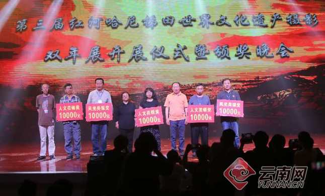 4月27日,第三届“红河哈尼梯田世界文化遗产摄影双年展”开展仪式暨颁奖晚会在元阳县元阳会堂举行。来自全国各地和国外的摄影家、策展人以“千年人文经典•魅力农耕文明”和“人与自然同绘•心与世界共享”的理念,用独特的摄影艺术展示红河哈尼梯田最美的精彩瞬间。