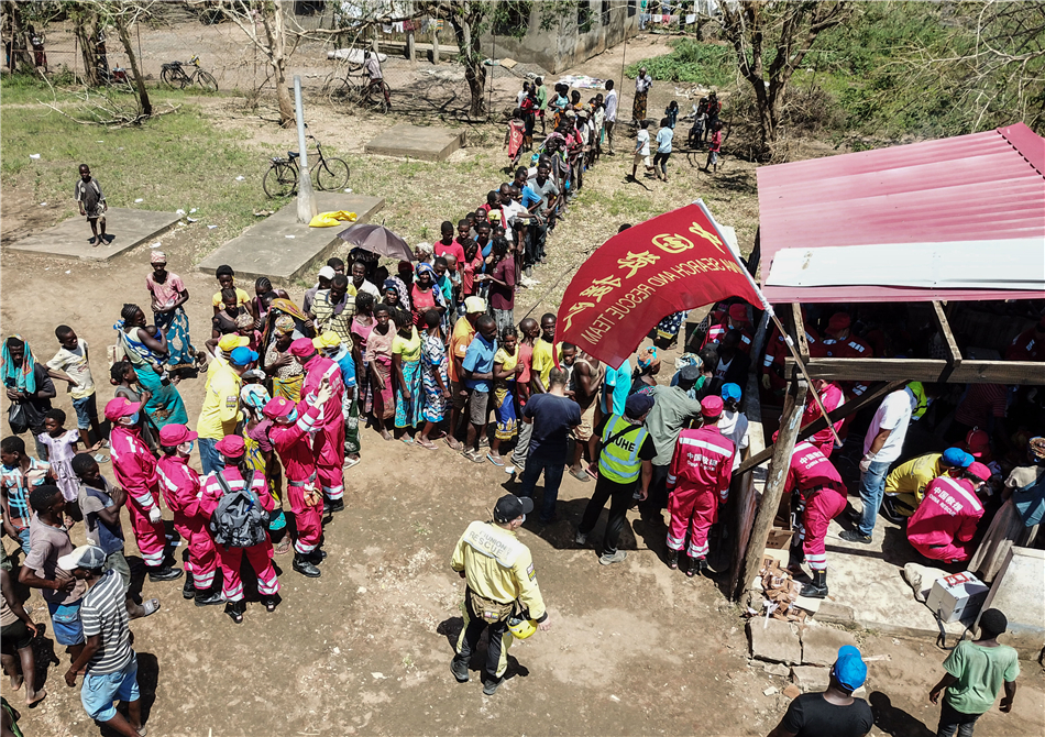 3月26日,在莫桑比克拉梅古地区,中国救援队展开救助行动。赴莫桑比克实施国际救援的中国救援队26日在受强热带气旋“伊代”重创的贝拉市展开实施医疗救助行动。强热带气旋“伊代”14日晚间从莫桑比克贝拉市登陆,带来暴风、强降雨天气和洪涝灾害,影响索法拉、马尼卡、太特和赞比西亚等省份,造成446人死亡,受灾人数超过53万。