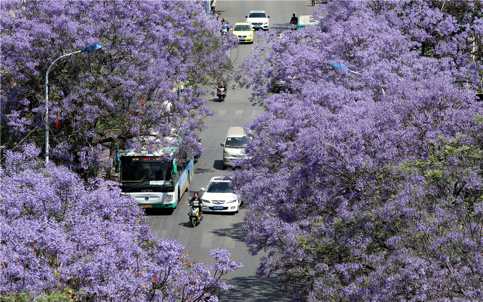 蓝花楹盛开:昆明网红路展现“梦幻蓝”