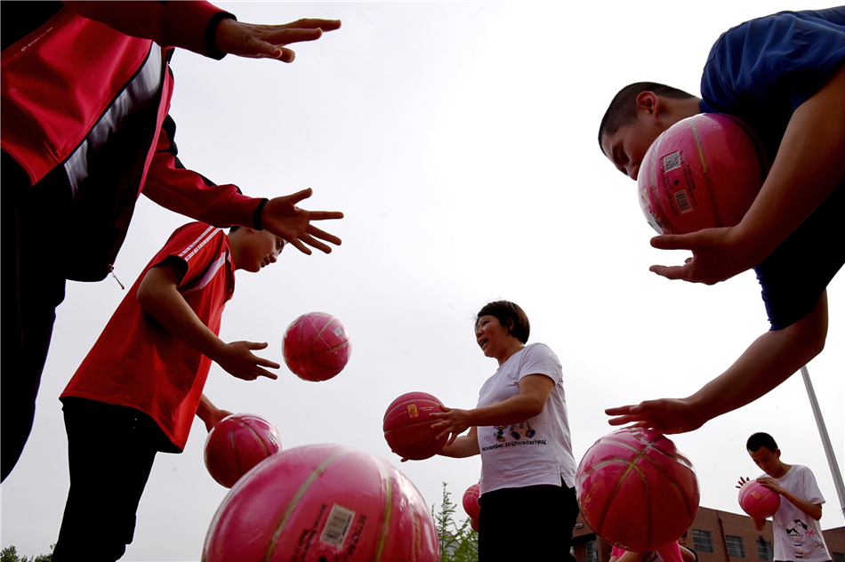 5月16日,残疾孩子在进行运动训练。新华社发(赵东山 摄)