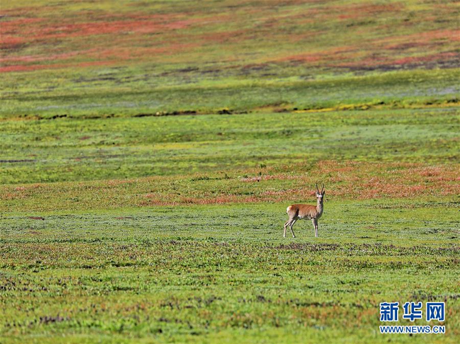 一只藏原羚在草原上驻足(8月14日摄)。 8月12日至14日,来自全国各地的31名自然爱好者聚集在海拔4200米的青海省玉树藏族自治州称多县嘉塘草原,参加“2019嘉塘自然观察节”。自然爱好者用独特视角记录珍稀野生动植物,观察三江源生态。 新华社记者 张大川 摄