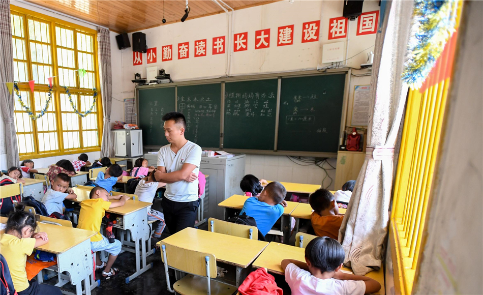 9月5日,十八洞小学学生在教室睡午觉。新华社记者 陈泽国 摄