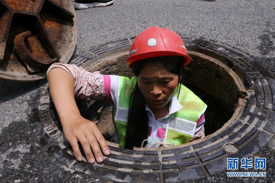 李琼芬爬出下水道。(新华网 赵普凡 摄)