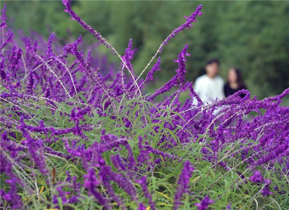 10月13日,游人在云南省曲靖麒麟爱情小镇休闲观景。 金秋时节,云南省曲靖市麒麟爱情小镇千亩花海景色迷人,吸引游人前来休闲观光。