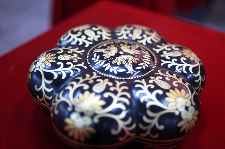 这是北京金漆镶嵌有限责任公司技师制作的金漆镶嵌作品(10月31日摄)。新华社记者李欣摄
