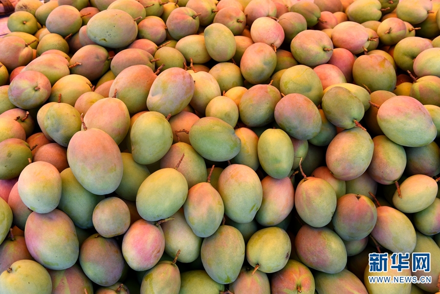 图为刚刚采摘下来的晚熟芒果。截至2018年底,华坪全县芒果种植面积已达33.6万亩,位居全国第三、全省第一,被誉为“中国芒乡”。(新华网 李宁/摄)