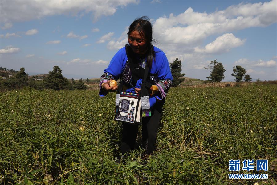 11月30日,云南省石林彝族自治县西街口镇路花村村民黄学英在采摘人参果。
