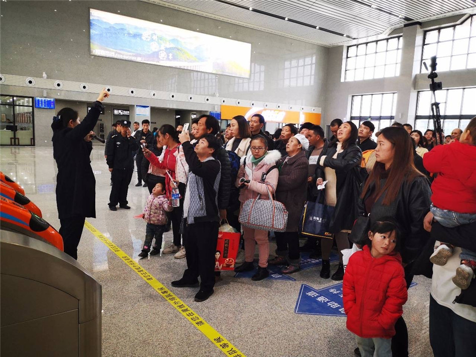 在镇雄站检票口,记者看到乘客们在工作人员的指引下有序进入站台。当银白色的“和谐号”动车宛如一条银龙缓缓进站,站台一片欢呼。大家用手机拍照留念,记录这一重要时刻。