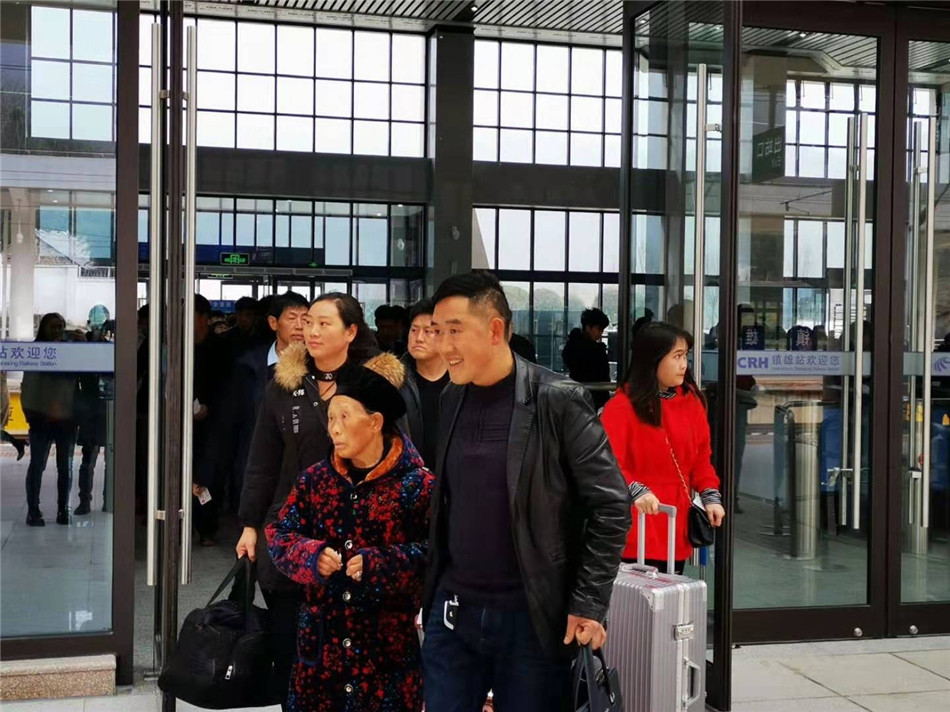 镇雄县泼机镇堵密村村民胡星和丈夫带着双方父亲和两个孩子,一家人高高兴兴乘坐高铁去成都旅游。