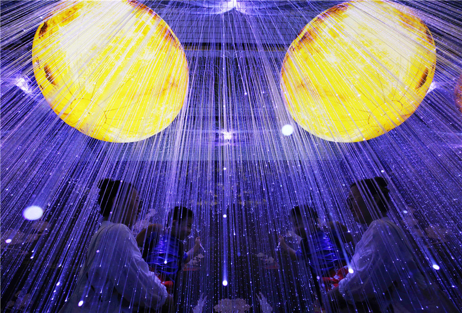 2019年8月28日,一对母子在法国巴黎举行的“江山如此多娇——三山五园皇家园林光影艺术展”上参观。在中法两国建交55周年之际,作为中法文化交流的重要活动,“江山如此多娇——三山五园皇家园林光影艺术展”26日开始在法国巴黎罗斯柴尔德公馆展出,这是“三山五园”文化巡展首次亮相海外。 新华社记者 高静 摄