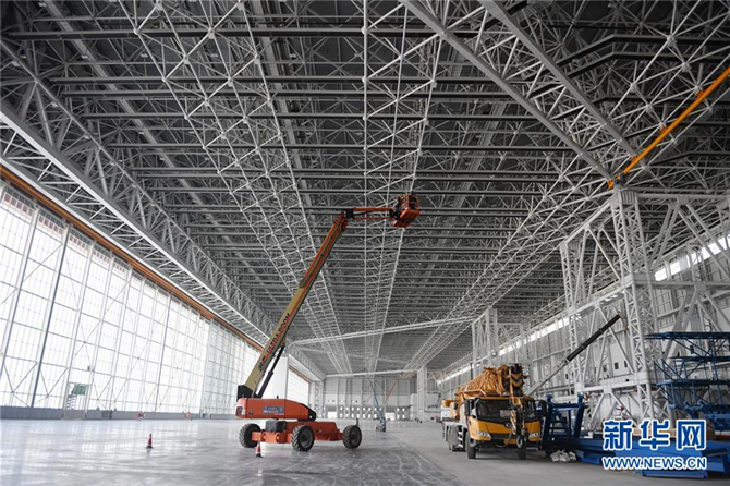 6月25日,施工人员在北京大兴国际机场中国南方航空机库施工。新华社记者张晨霖摄