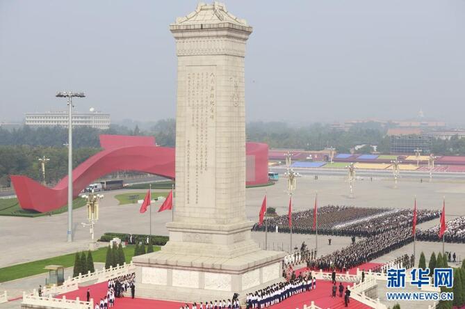 烈士纪念日向人民英雄敬献花篮仪式在北京天安门广场隆重举行(2019年9月30日摄)。新华社记者刘彬摄