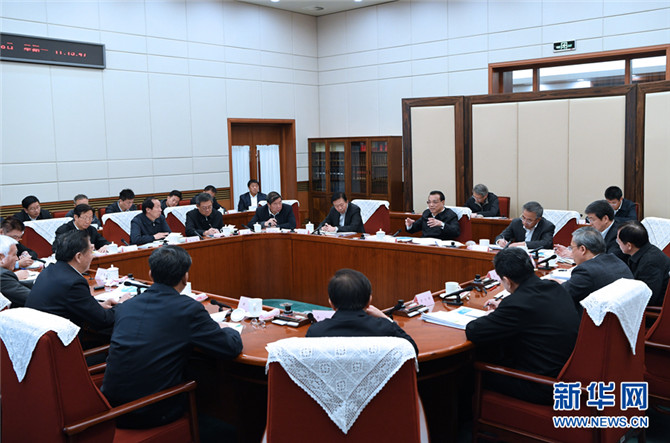 11月18日,中共中央政治局常委、国务院总理李克强在北京主持召开南水北调后续工程工作会议,研究部署后续工程和水利建设等工作。 新华社记者 饶爱民 摄