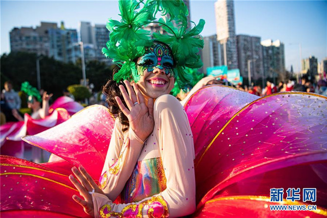 2019澳门国际幻彩大巡游8日下午在澳门举行,来自“一带一路”沿线国家和地区的艺术团体与澳门的艺术家们共同参与,欢庆澳门回归祖国20周年。