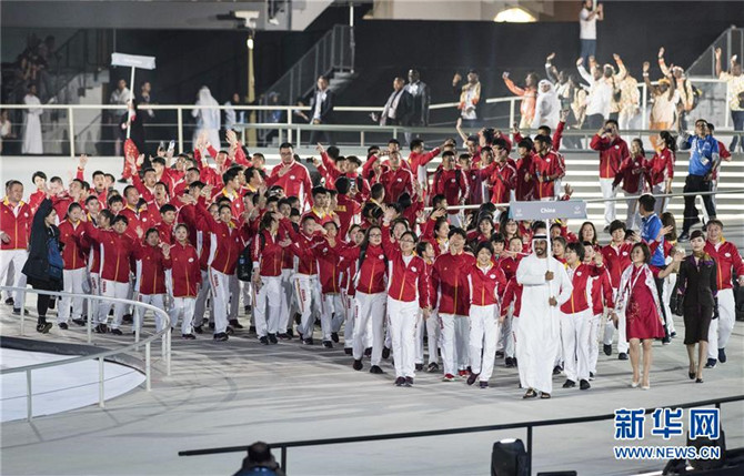 3月14日,中国代表团在开幕式上入场。当日,第十五届世界夏季特殊奥林匹克运动会在阿联酋阿布扎比开幕。这是夏季特奥会首度在中东地区举办。新华社记者孟涛摄