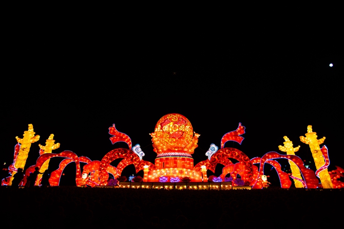当晚,“盛世中国 光耀世博”“光影民俗 华夏风情”“童真童趣 亲子情愫”“国泰民安 伟大复兴”等不同板块的展示主题,绚烂山茶、七彩孔雀等花灯造型,将民族民俗文化与灯光艺术充分结合,并向各方游客展现了七彩云南美。