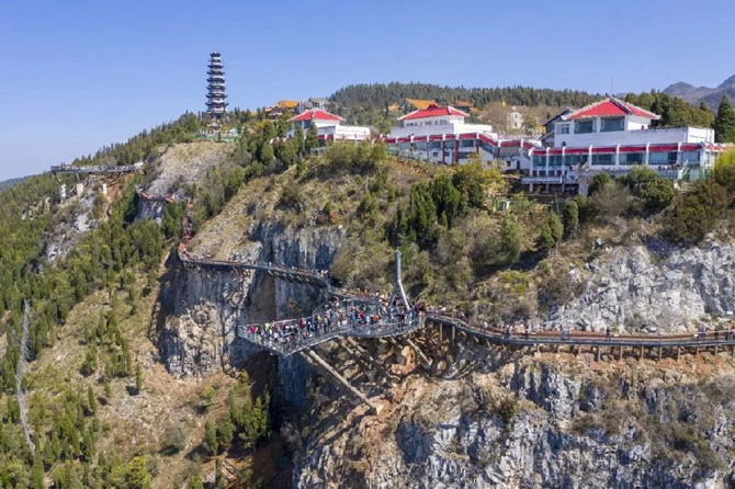 不来老阴山玻璃栈道走一圈
