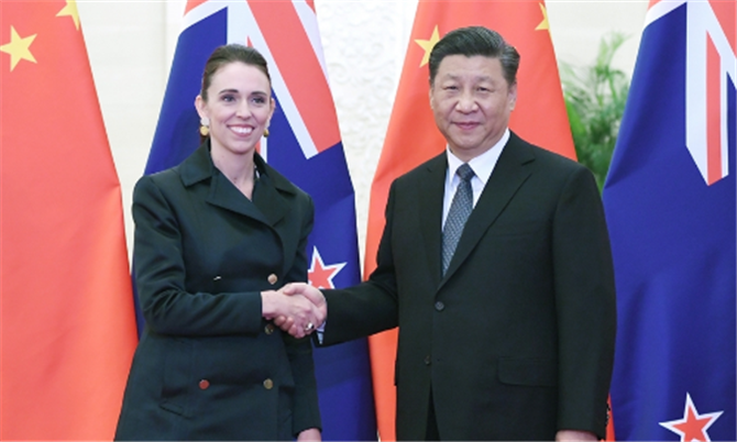 习近平就新西兰不久前发生严重枪击事件再次向新方表示诚挚慰问。习近平指出,总理女士在国内面临特殊重要议程的情况下专程来华访问,充分体现了你本人和新西兰政府对中新关系的高度重视。中国历来把新西兰视为真诚朋友和合作伙伴。建交47年来,中新关系一直走在中国同西方发达国家关系前列,创造了多项“第一”。当前,两国关系发展面临新的形势。双方要坚持互信互利原则,不断丰富中新全面战略伙伴关系内涵,推动两国关系百尺竿头、更进一步。中方愿和新方共同努力,推动中新关系继续“领跑”中国同西方国家关系。
